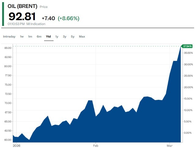 Having said that, the U.S. economy is not immune to broader movements in commodity markets, and the war with Iran and the subsequent closure of the Strait of Hormuz is causing a short-term supply shock that has caused the price of oil to skyrocket above $92 per barrel as-of this writing.