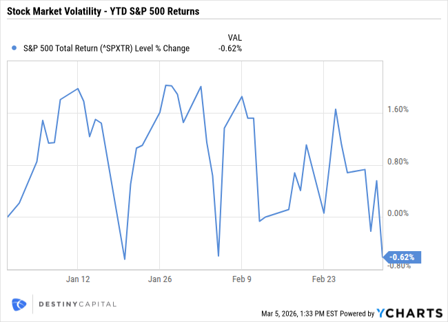 Each of these events on their own would be enough to generate considerable uncertainty across global financial markets. Combine these events into a two month window, and investors are starting to feel a little punch drunk and wary of when the next blow might land. As you can imagine, the situation in Iran is evolving by the minute and markets have been extremely reactive to headlines. This is evident in the chart below that shows the year-to-date returns for the S&P 500 index. In the industry, we refer to this type of advance-and-decline market activity as ‘whipsawing’, which is a hallmark of uncertainty and volatility.