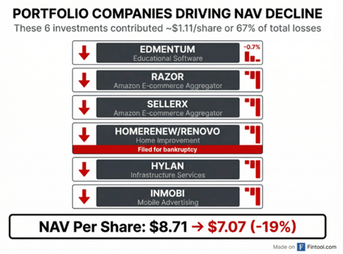 Over the past few weeks, private credit has garnered a lot of headlines due to recent struggles in a Blackrock private credit fund named TCP Capital Corp that trades on the Nasdaq exchange under the ticker TCPC. In fact, TCPC’s Net Asset Value (NAV) declined a staggering -19% largely due to non-accruals (defaults) in six of the fund’s underlying credits, as seen below.