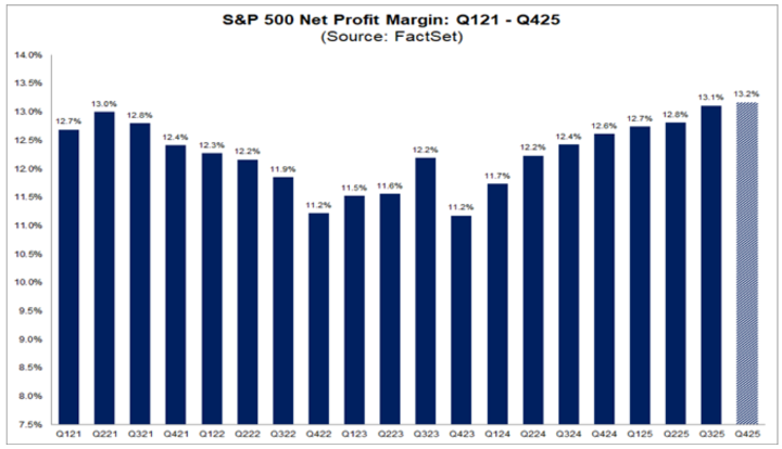 But wait, there’s more! At 13.2%, the S&P 500 is currently reporting the highest net profit margin in more than 15 years, and the technology sector remains a key contributor here with net profit margins of 29%.